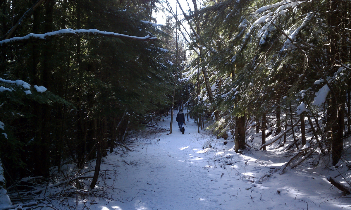 There's no reason to let all the people scare you off. This is a nice hike, especially in the winter, and most fellow hikers are friendly. We said "hello" back and forth a good many times to strangers heading the opposite way, or as we passed. This is an extremely friendly dog trail as well. In fact, if I read the sign correctly, a leash isn't really required...just being in "control", voice command or otherwise, is all that's needed.